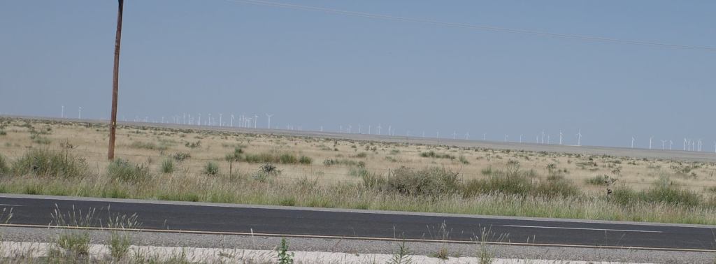 110 miles. The first picture tells the story of the day. On the shoulder of US-70. Almost flat; almost straight; almost (apparently) unused land.